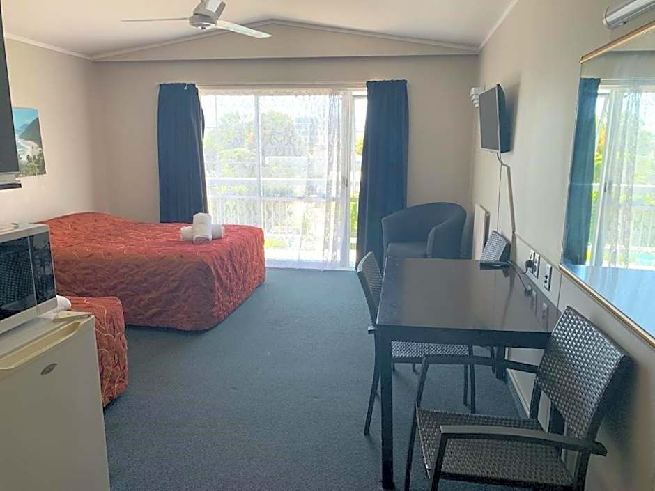 This spacious studio room has one queen-size bed and one single bed. As well as the listed facilities, the studio also has a microwave, small refrigerator, jug, toaster and tea and coffee making facilities. The balcony overlooks the pool.
